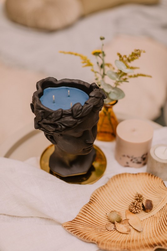 Unique soy wax candle poured in a goddess bust flower pot. Not only it will make a great home decor, but also will make an unforgettable gift. After candle burns out, the pot can be repurposed as a flower pot, vase, used as a candle holder for a pillar candle or a container for anything else you may think of. Flower pot is made from concrete and it is quite heavy so after candle burns out it can be safely placed on porch or terrace.