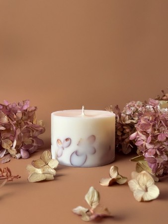 Sastāvs: dabīgais sojas vasks, kokvillnas datks, hortenziju ziedi, melnās orhidejas aromātikā eļļa